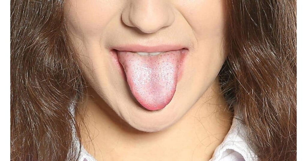 A thick white coating on your tongue is oral thrush, a form of candida infection. This can cause all sorts of digestive issues and can affect people of any age. Babies can contract oral thrush from their mothers.